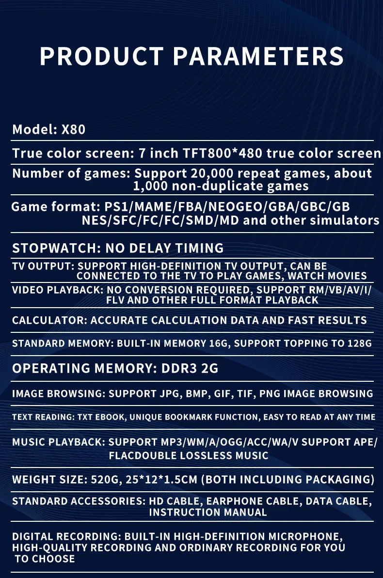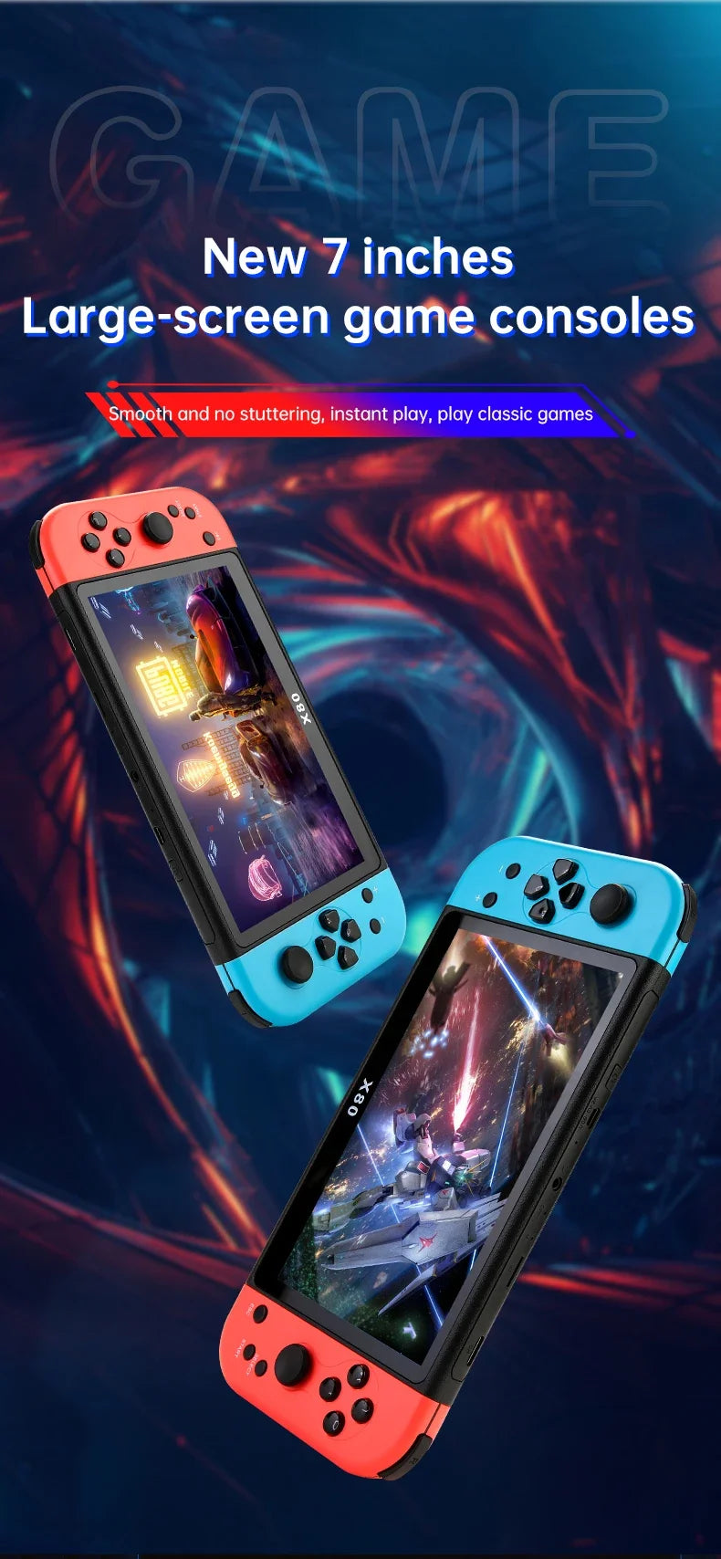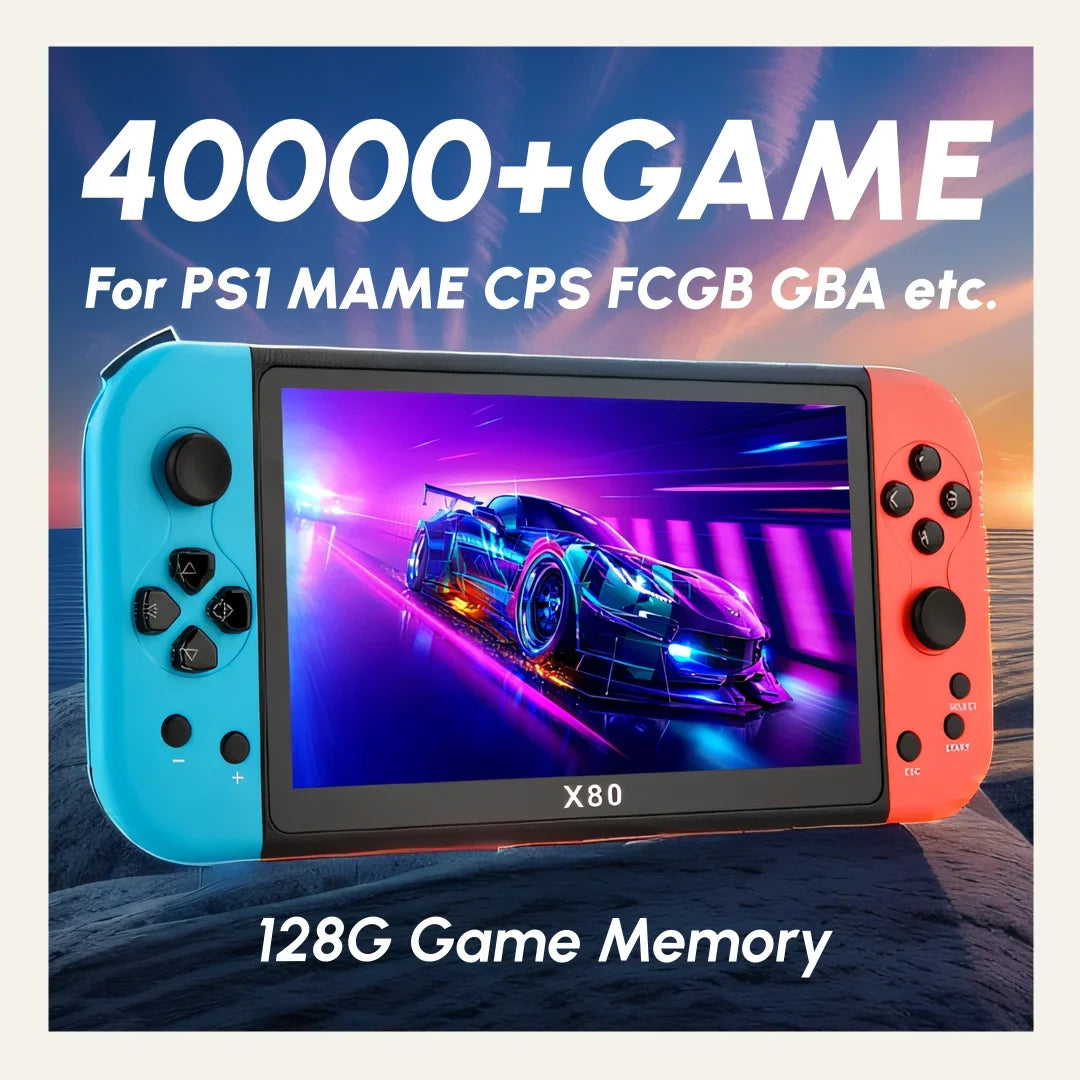 Experience Retro Gaming X80 Handheld Console 40000+Classic Games 128G Memory For PS1 MAME CPS FCGB 7.0" Screen Children's Gift
